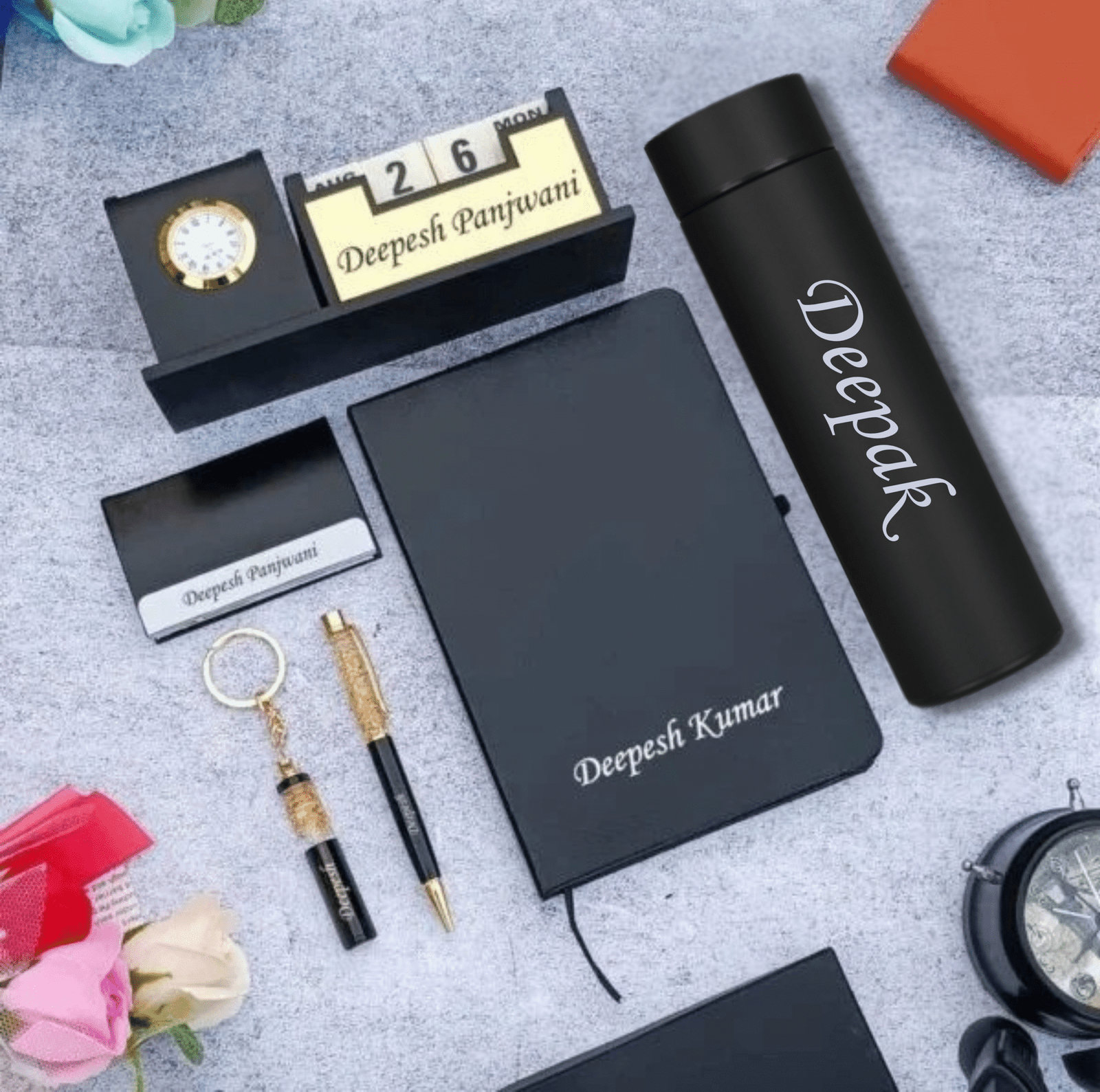 Present the “Personalised Gift Combo” as a thoughtful gesture for any occasion, combining practicality with elegance to create a memorable gift that recipients will treasure for years to come.